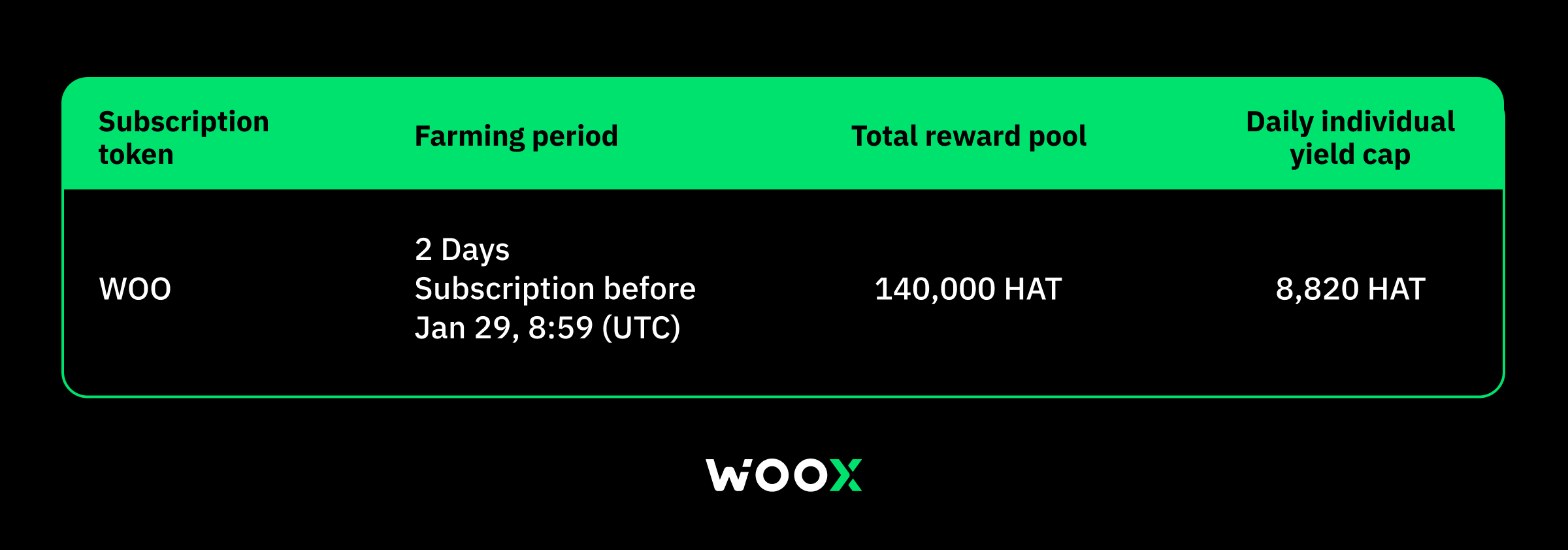 - Subscribe to HAT yield farming vault with WOO to farm yields from a massive 140,000 HAT prize pool. All yields will be distributed in HAT.
