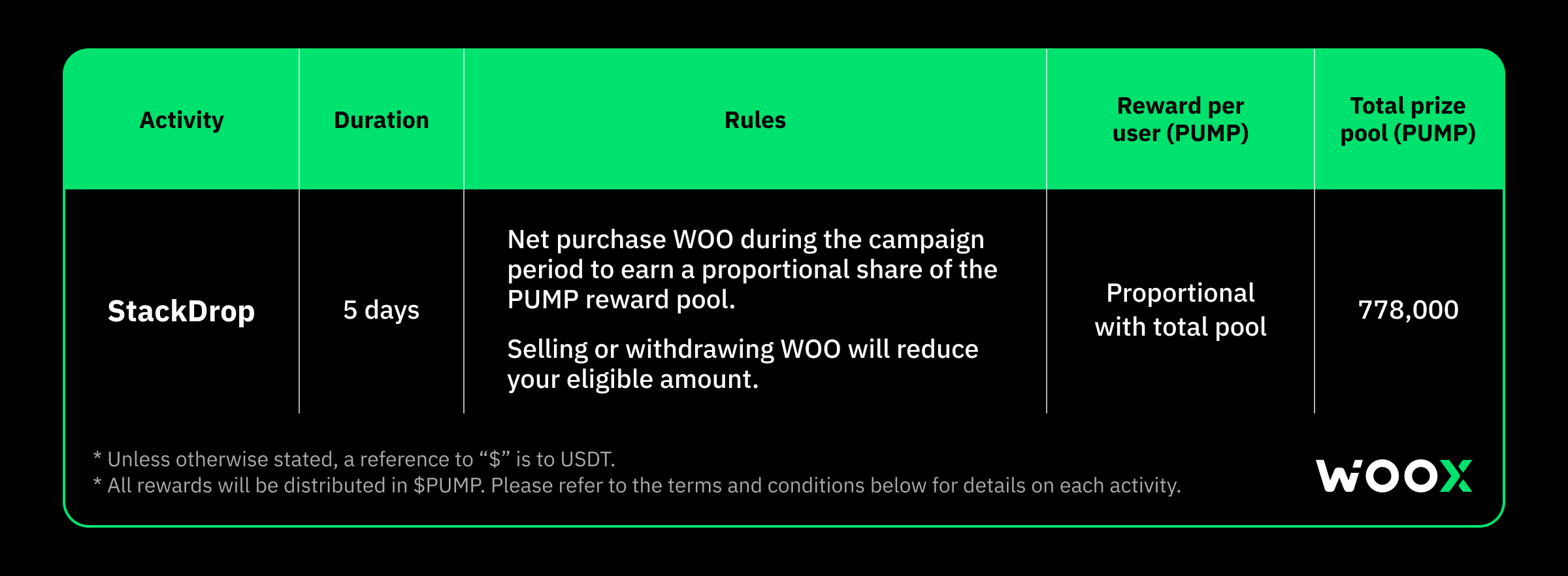 WOO Ignition: Pump.fun (PUMP) StackDrop - Earn Airdrops with WOO X