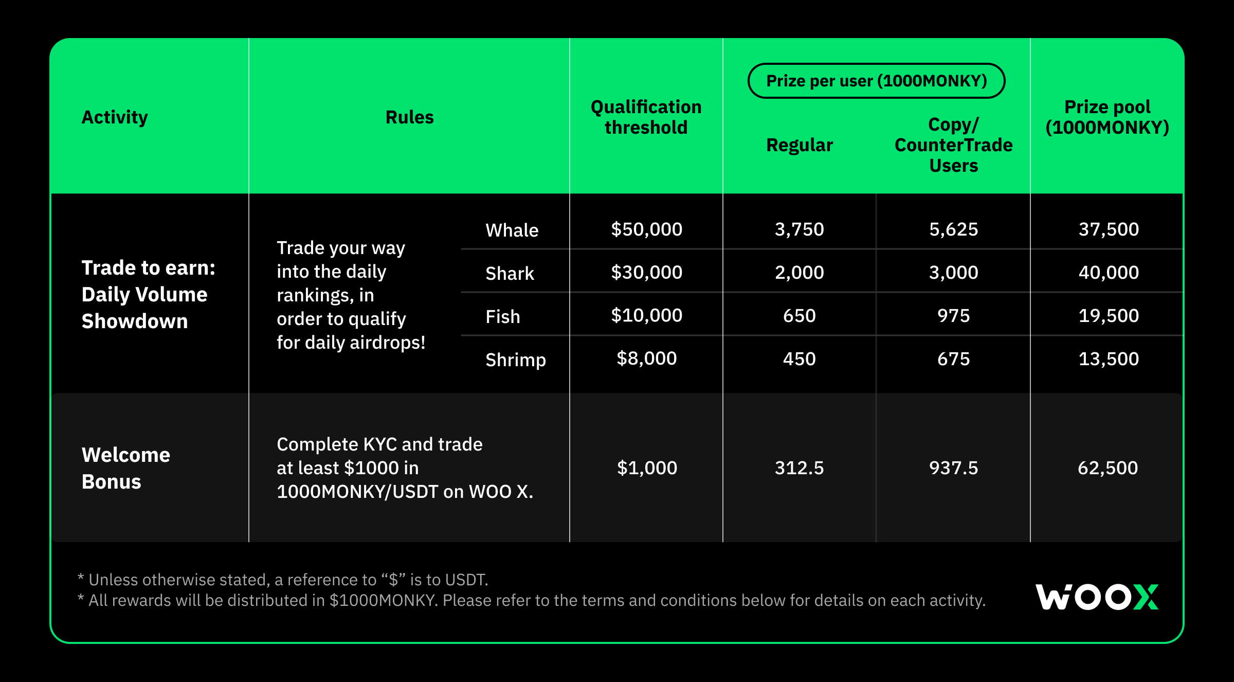 - Participants can win once per day, based on the ranking of their total 1000MONKY/USDT trading volume accumulated within that day.