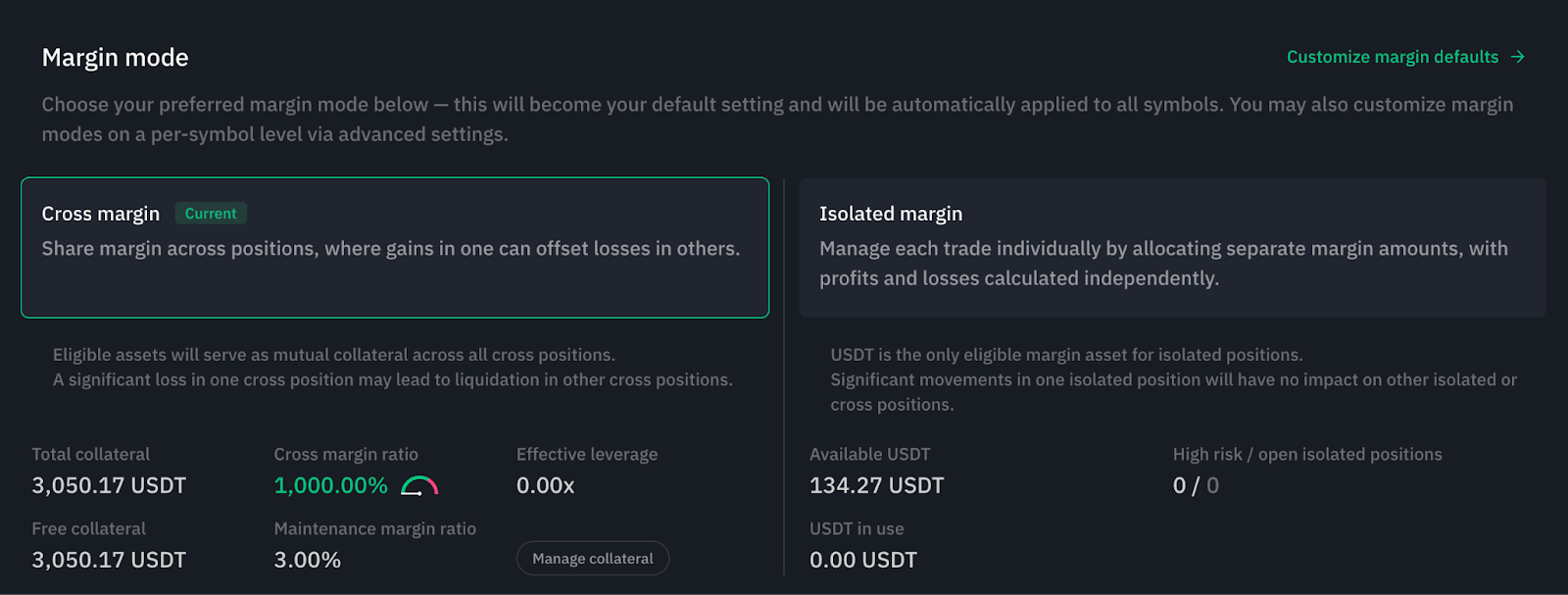 Additionally, different margin modes are also available and users have the choice between Cross margin and Isolated margin.